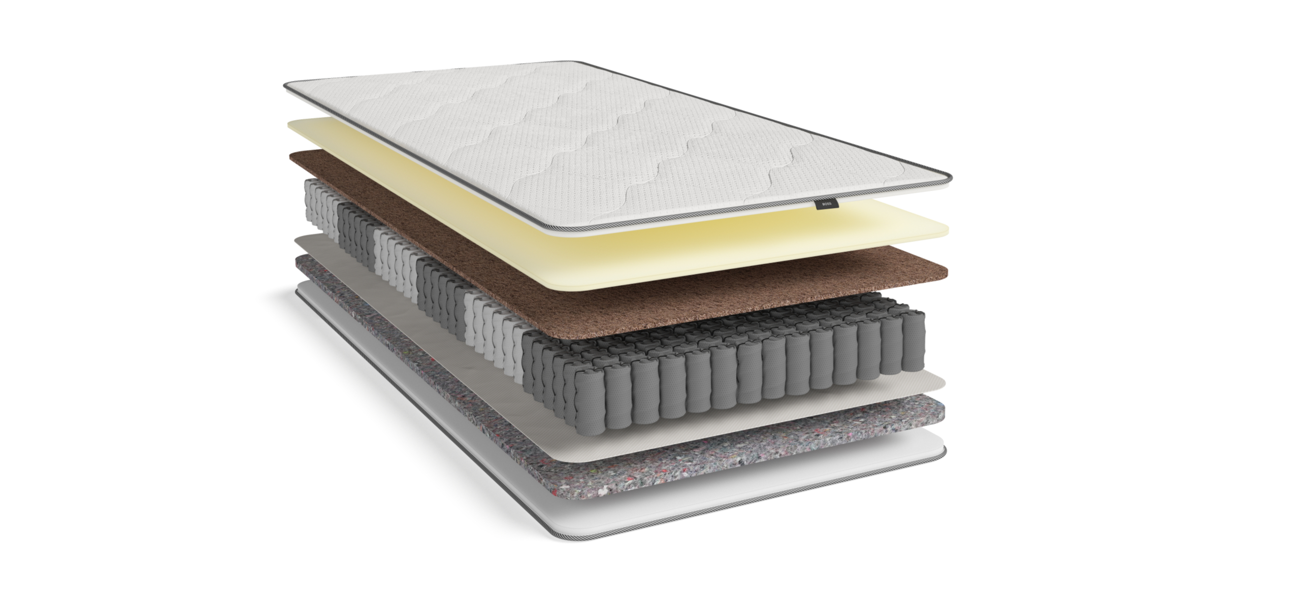 Искусственный латекс ECO LATEX, латексированная кокосовая койра, НПБ BOSS SPRING 500, спанбонд, форплит ANATOMIX LUX