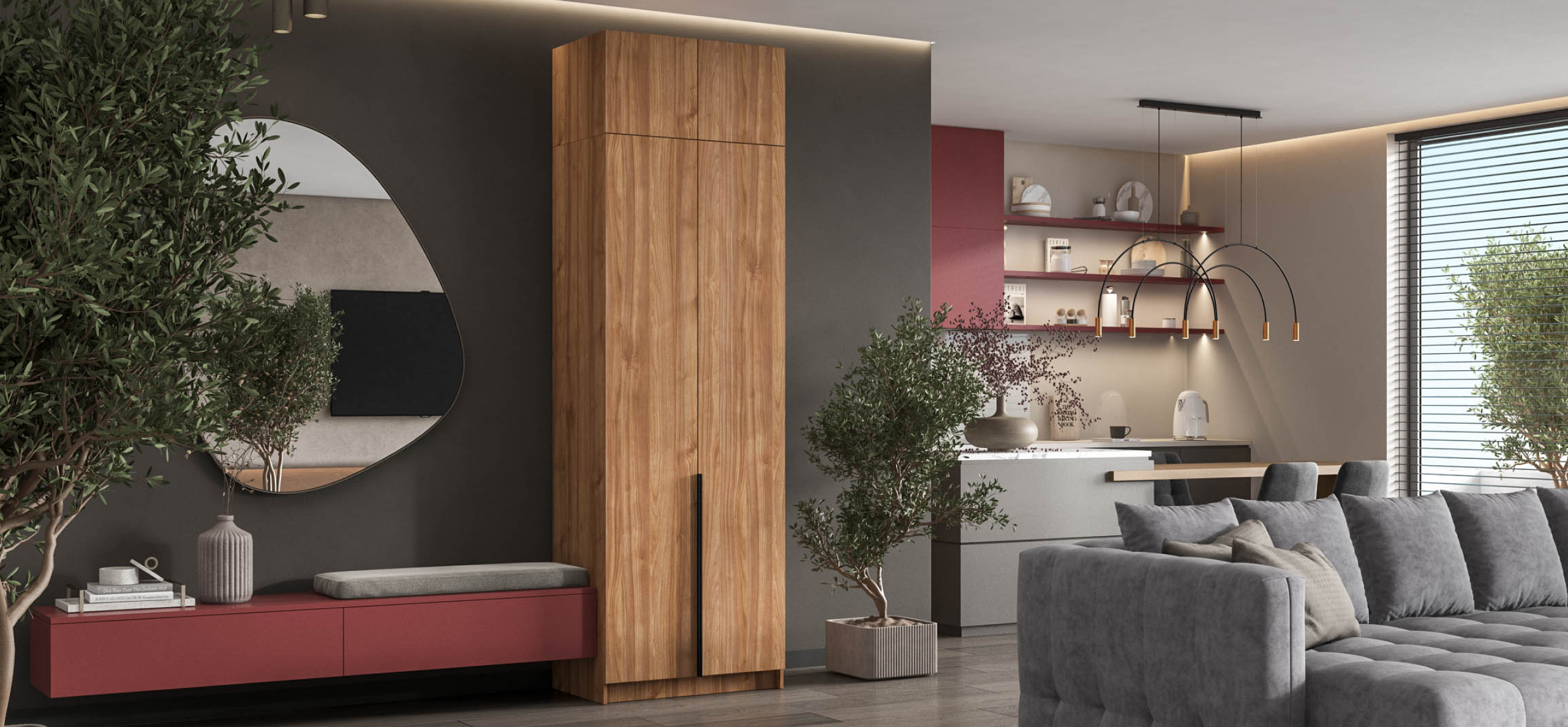 Открывайте фасады лёгким касанием — скрытые толкатели работают бесшумно, даря ощущение заботы о каждом жесте. Храните книги, декор или сезонные аксессуары так, чтобы они радовали глаз, а не собирали пыль.
