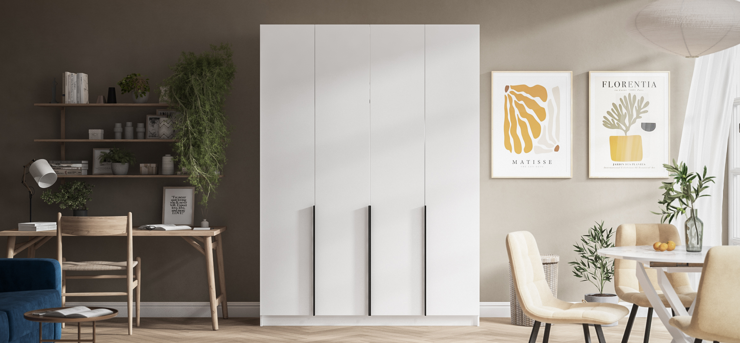 Шкаф Рим 160 — масштабное решение для тех, кто хочет хранить много и держать интерьер в современных трендах. Лаконичный фасад с удлинёнными чёрными ручками отражает эстетику 2025 года и становится выразительным акцентом любой спальни — от сканди до неоклассики. Увеличенная ширина и симметричная конструкция позволяют разместить сезонный гардероб, обувные коробки и текстиль так, чтобы в комнате осталось больше свободного пространства.