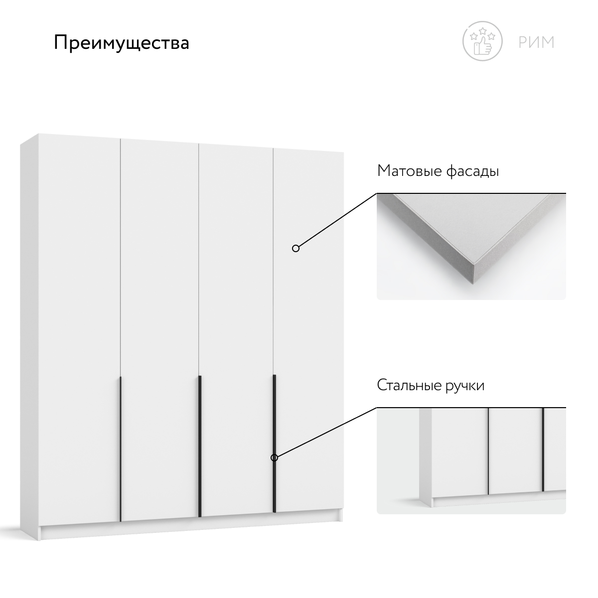 Рим 180 шкаф распашной 4Д+ящики Белый