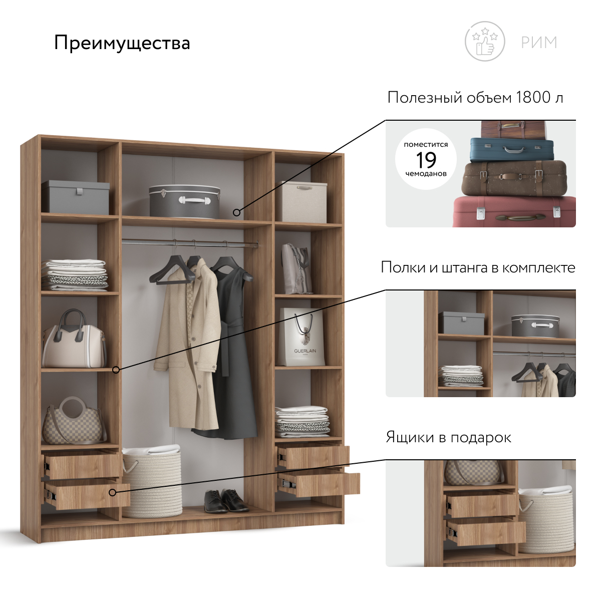Корпус изготовлен из безопасной ЛДСП класса Е1 с износостойким покрытием, чтобы фактура и цвет радовали долгие годы. Рим 180 даёт ощущение простора и упорядоченности, превращая спальню или гостевую комнату в гармоничное, «дышащее» пространство. Выберите шкаф, который не просто хранит вещи, а задаёт стильный порядок в вашей жизни.