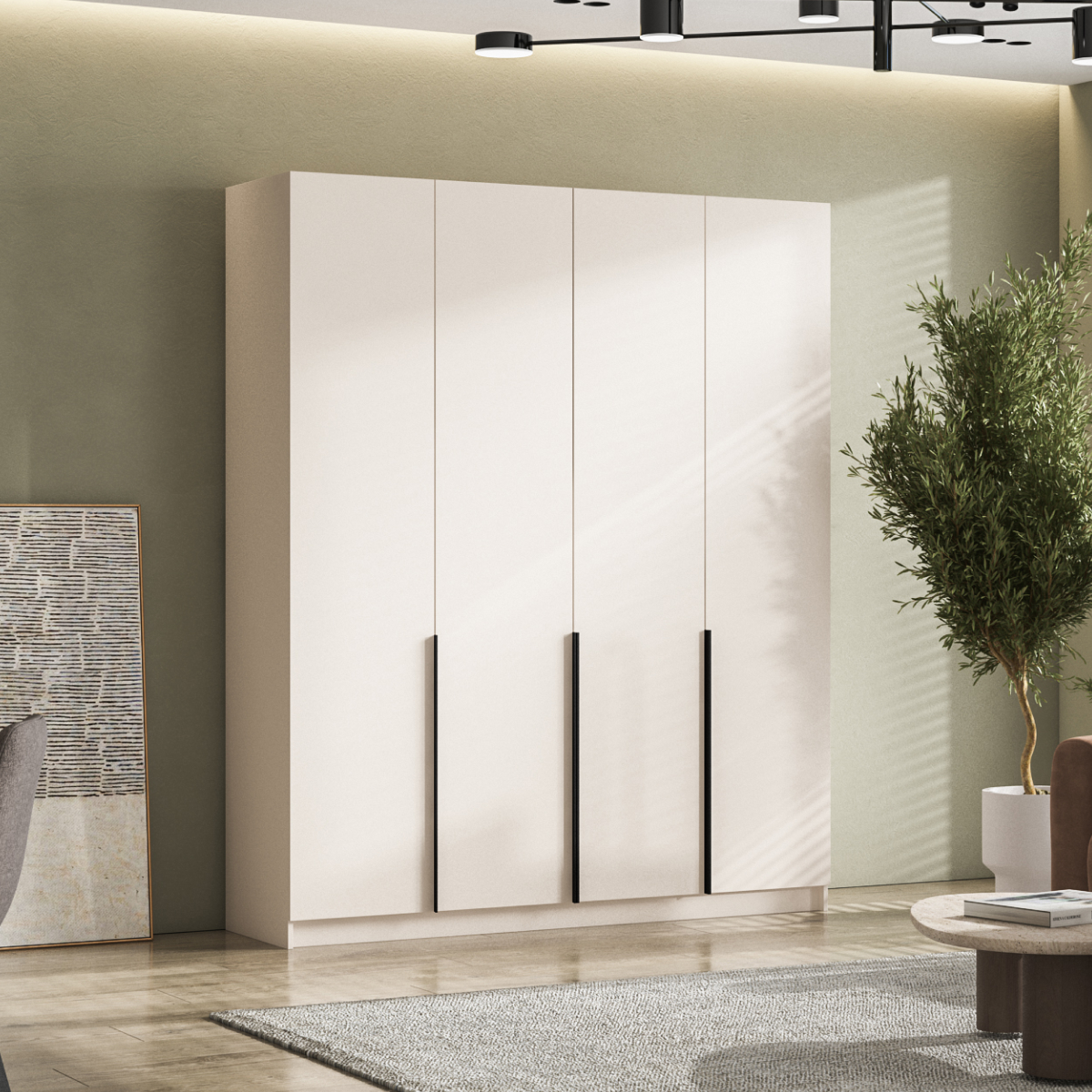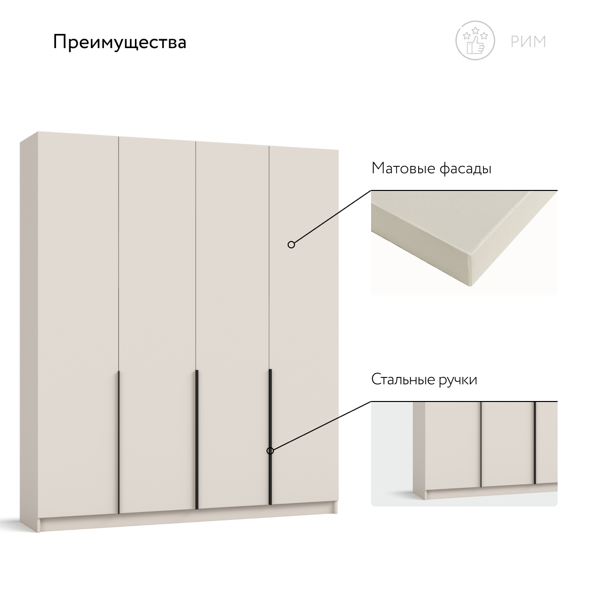 Шкаф Рим 180 — масштабное решение для тех, кто хочет хранить много и держать интерьер в современных трендах. Лаконичный фасад с удлинёнными чёрными ручками отражает эстетику 2025 года и становится выразительным акцентом любой спальни — от сканди до неоклассики. Увеличенная ширина и симметричная конструкция позволяют разместить сезонный гардероб, обувные коробки и текстиль так, чтобы в комнате осталось больше свободного пространства.