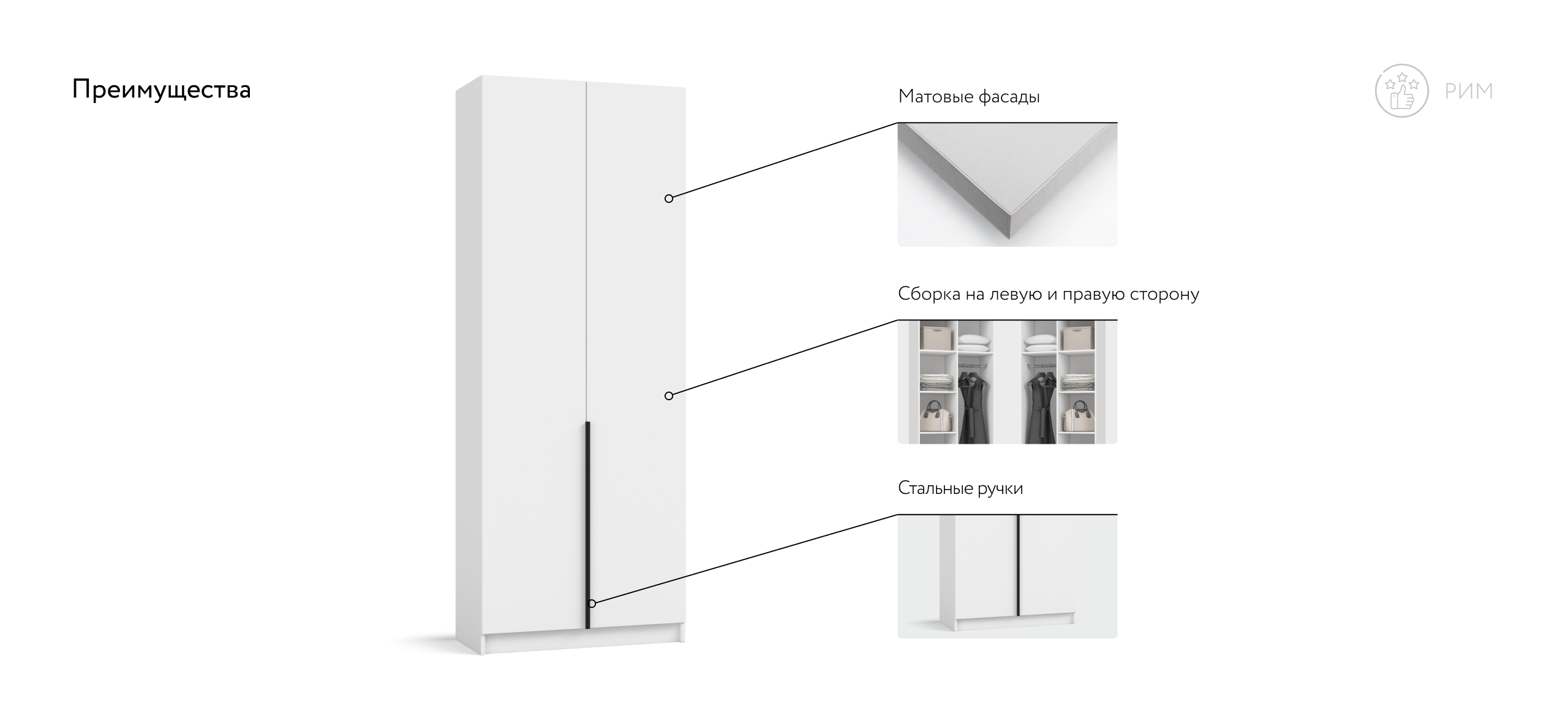 Шкаф Рим 80 — компактный ответ на запрос городской квартиры: хранить всё необходимое, экономя пространство. Лаконичный фасад с удлинёнными чёрными ручками поддерживает эстетику 2025 года и делает шкаф заметным акцентом любого интерьера — от сканди до неоклассики. Несмотря на скромную ширину, продуманное отделение легко принимает базовый гардероб, аккуратные коробки с обувью и текстиль, помогая сохранить порядок и освободить комнату от лишних вещей.