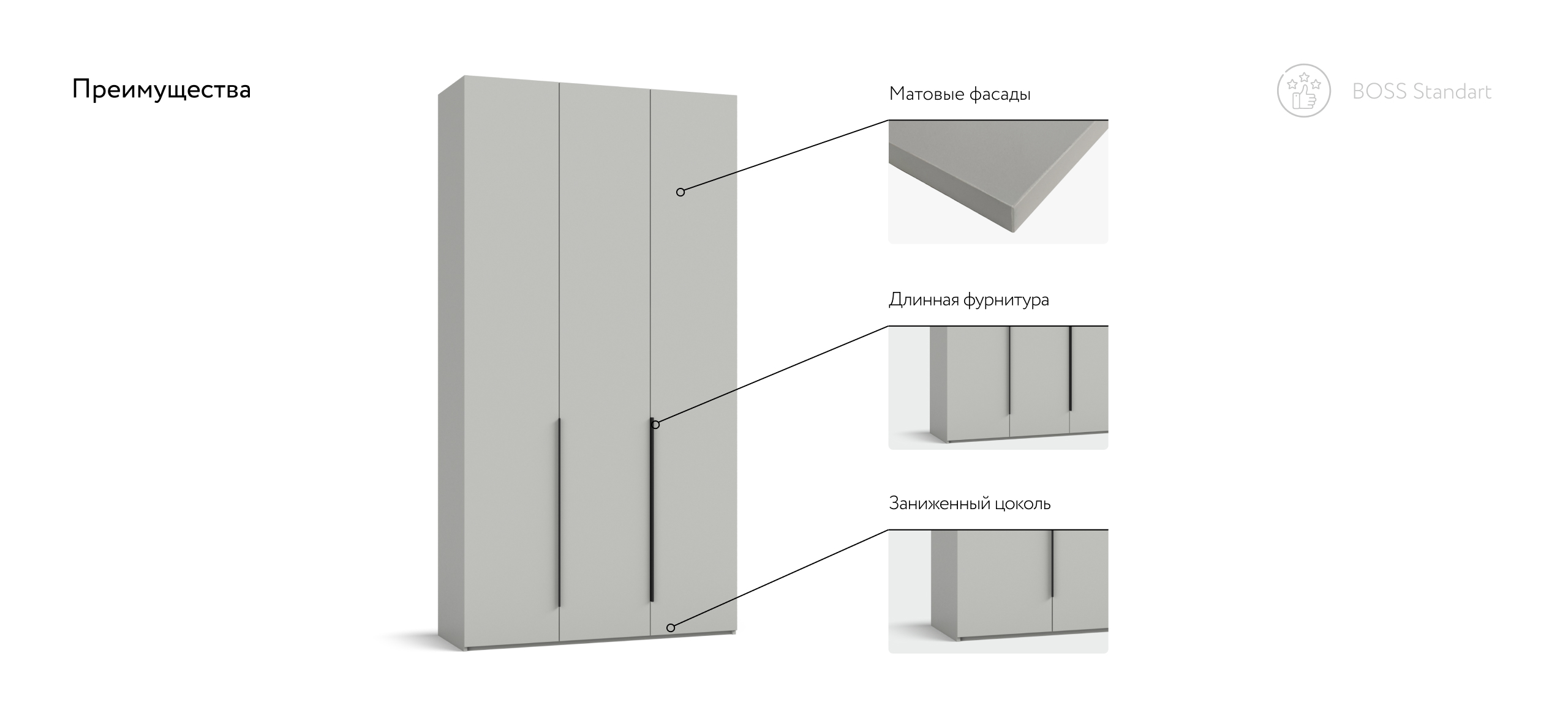 Коллекция корпусной мебели BOSS STANDART - новое направление сегодняшних трендов, создана для максимального комфорта и организации домашнего пространства.
