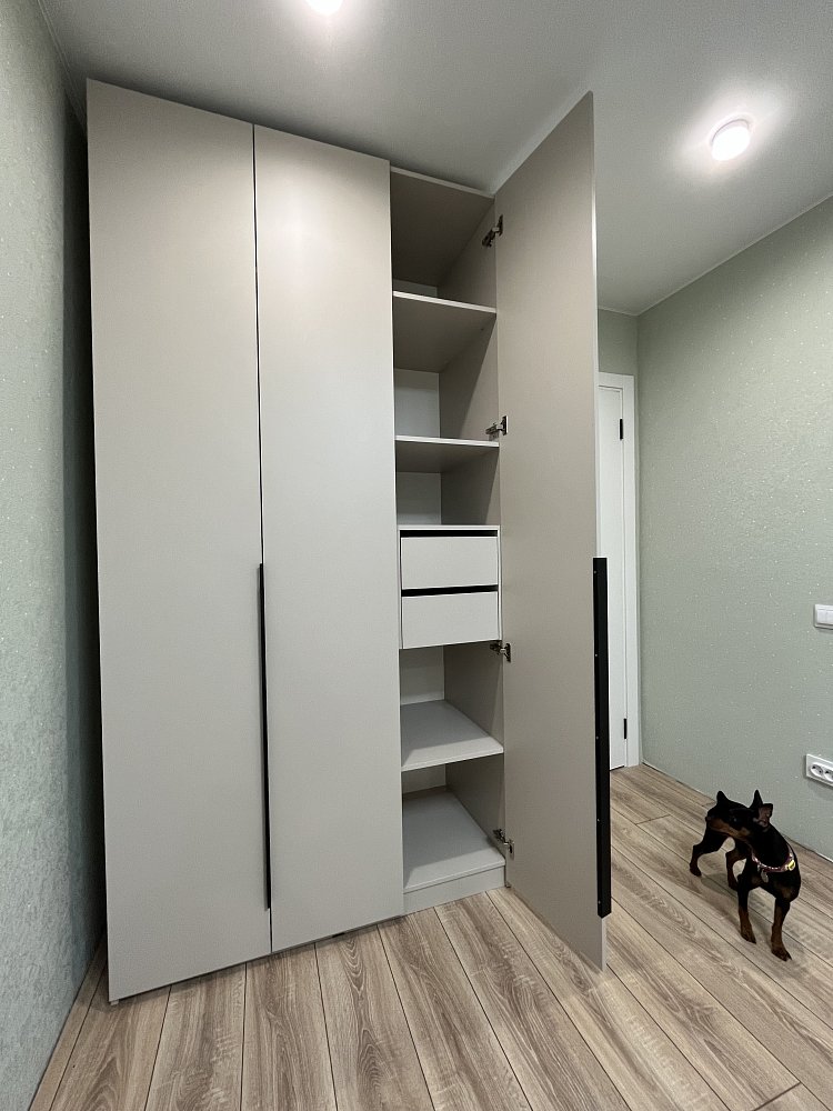 Трендовые оттенки Шиншилла серая и Кашемир серый будут выглядеть уместно в любом интерьере, а черная металлическая фурнитура добавляет стиля и вкуса этой коллекции. Мебель выглядит достойно, и подчеркивает изысканный вкус владельца. Дополни шкаф стеллажом BOSS NEW