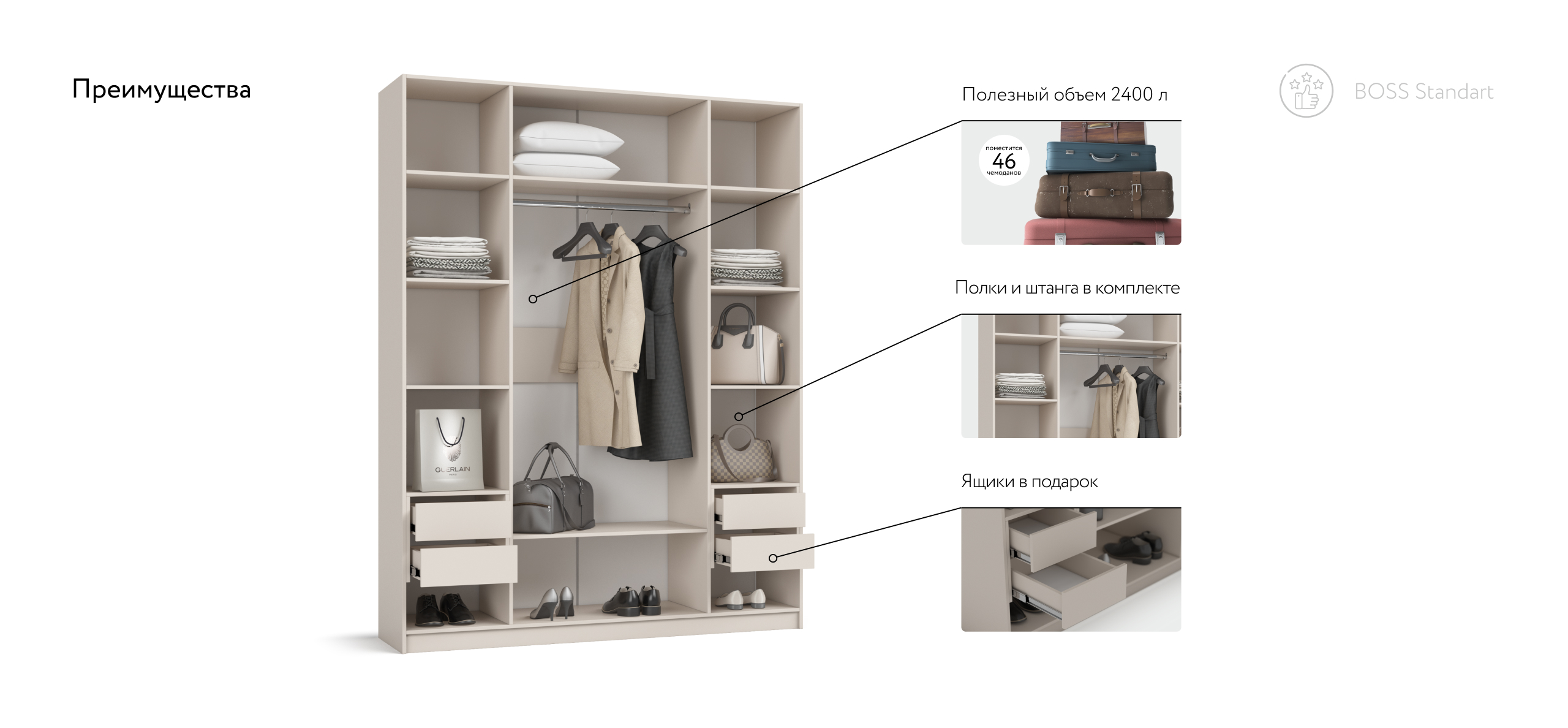 Коллекция корпусной мебели BOSS STANDART - новое направление сегодняшних трендов, создана для максимального комфорта и организации домашнего пространства.