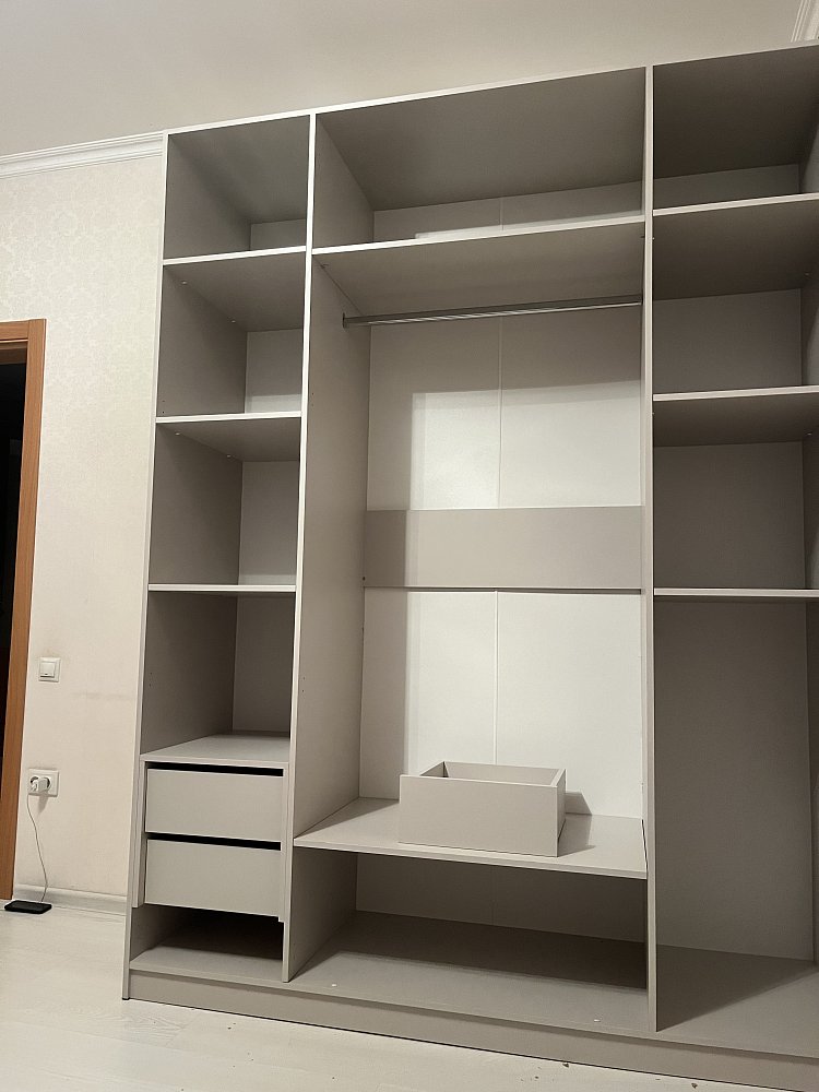 Трендовые оттенки Шиншилла серая и Кашемир серый будут выглядеть уместно в любом интерьере, а черная металлическая фурнитура добавляет стиля и вкуса этой коллекции. Мебель выглядит достойно, и подчеркивает изысканный вкус владельца. Дополни шкаф стеллажом BOSS NEW