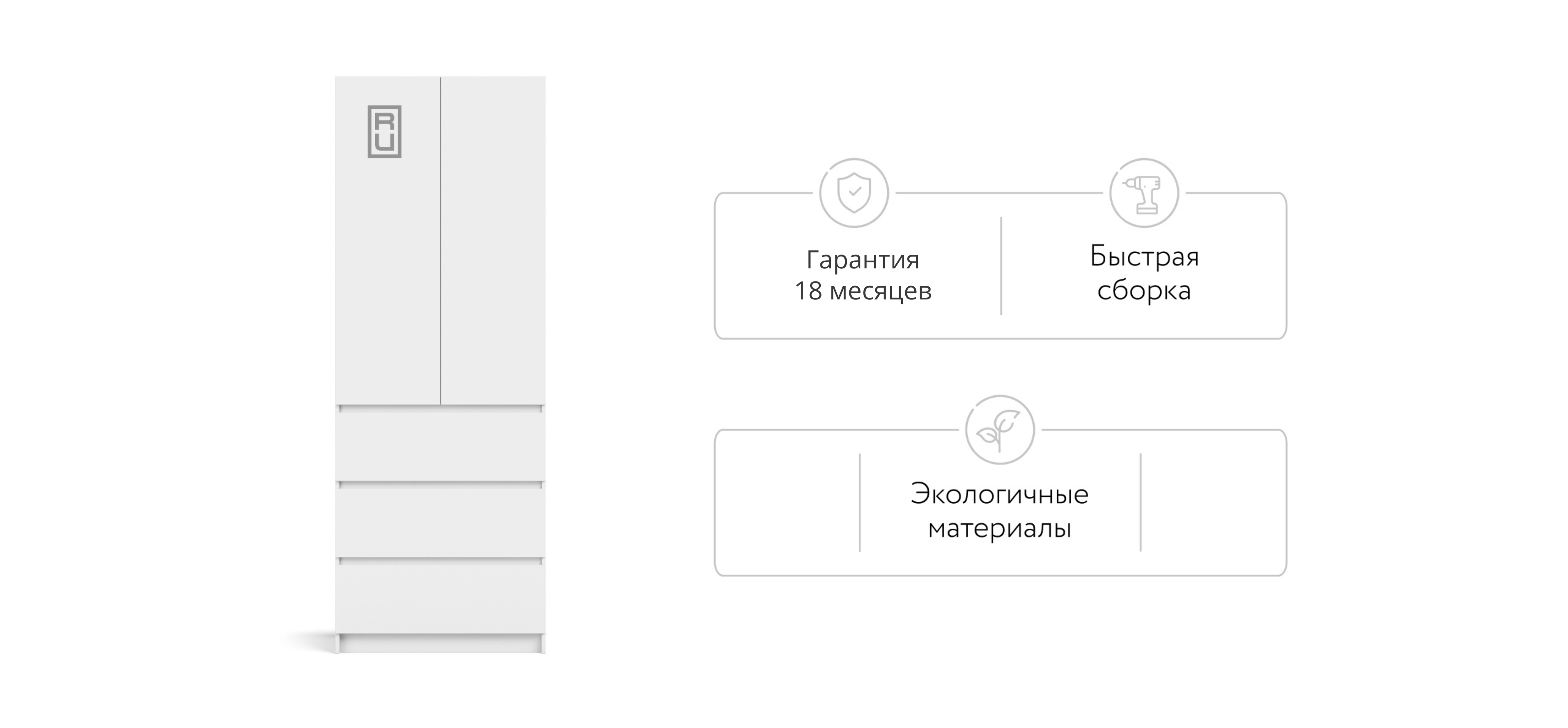 Шкаф становится чётко и ровно на любом покрытии: линии сходятся, зазоры аккуратные, двери ходят тихо и стабильно. Материалы — практичные и безопасные для дома (ЛДСП Е1), кромки аккуратно обработаны, чтобы внешний вид держался годами.