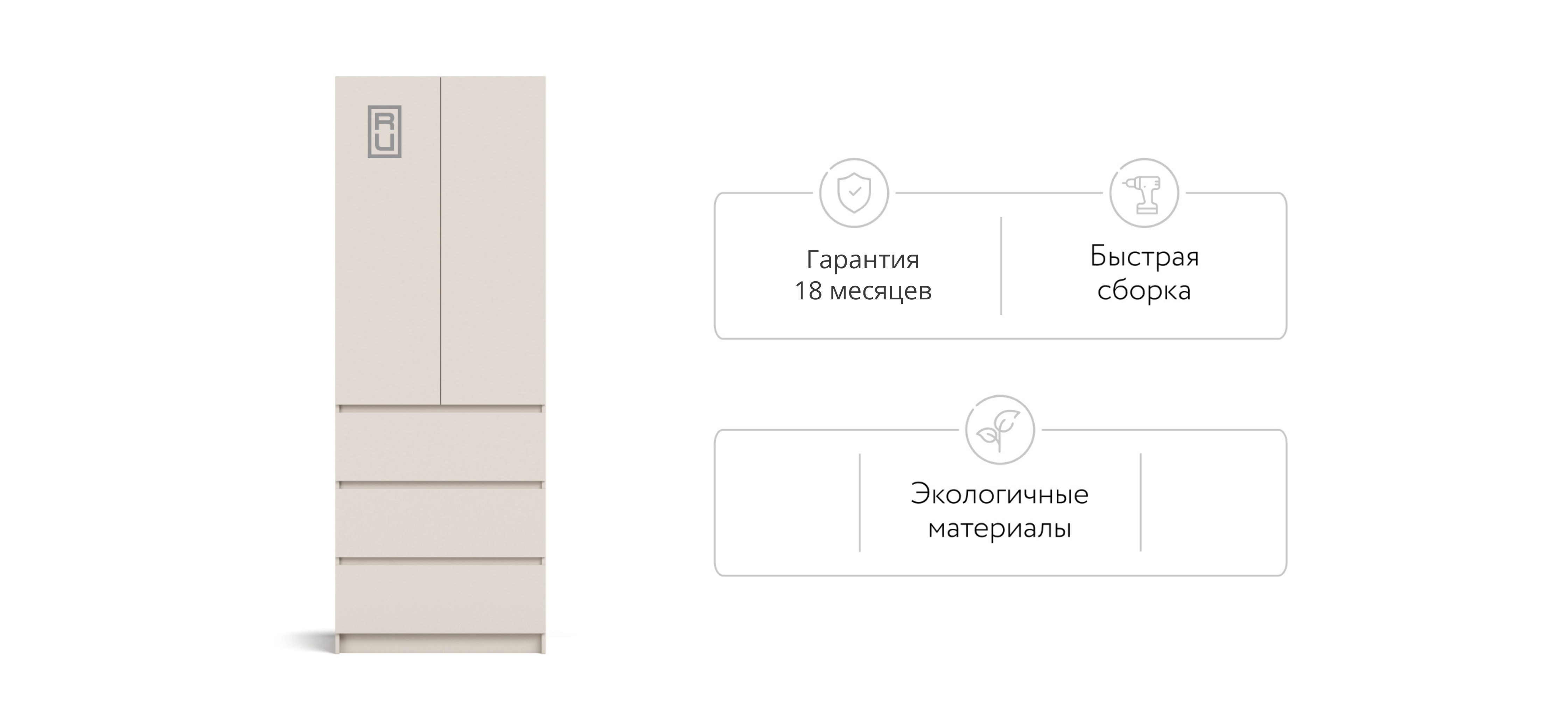 Шкаф становится чётко и ровно на любом покрытии: линии сходятся, зазоры аккуратные, двери ходят тихо и стабильно. Материалы — практичные и безопасные для дома (ЛДСП Е1), кромки аккуратно обработаны, чтобы внешний вид держался годами.