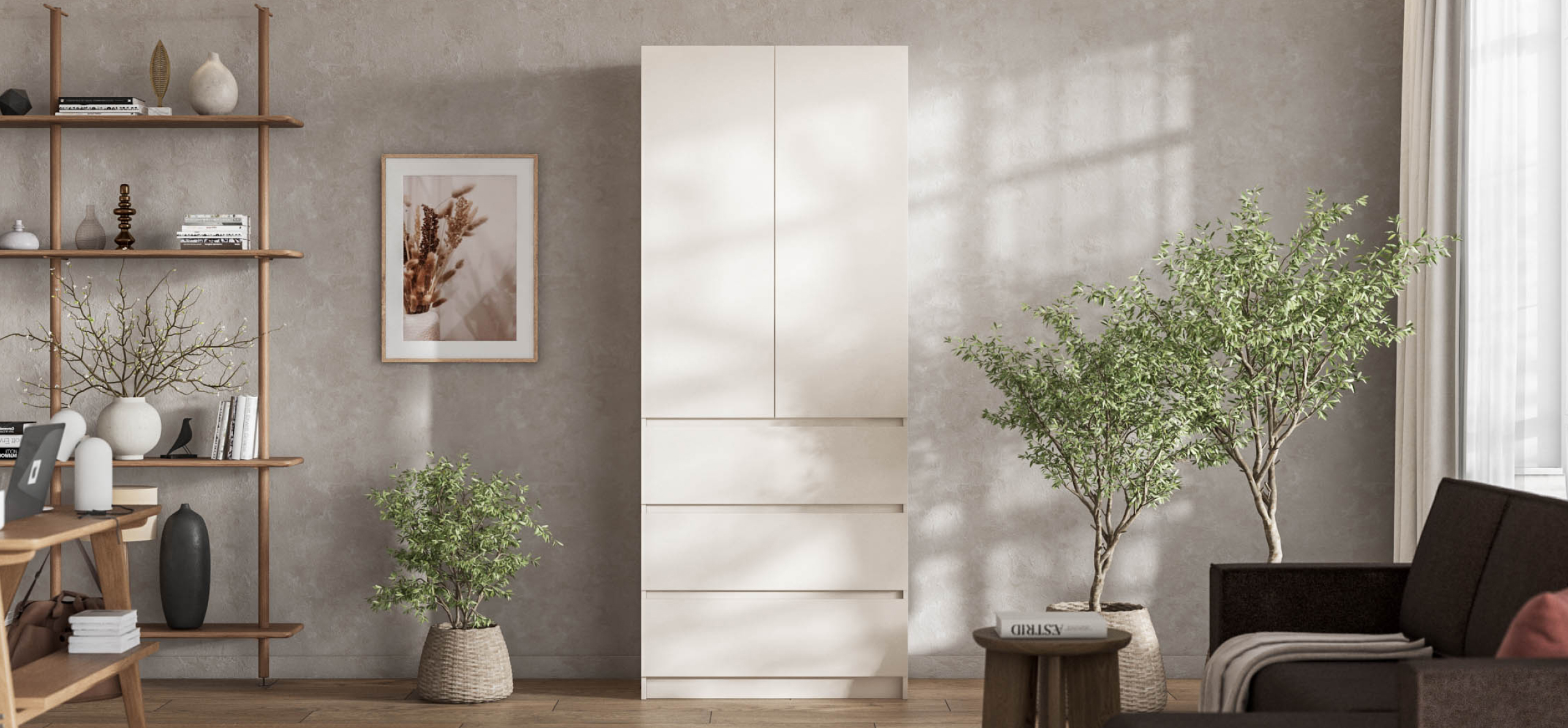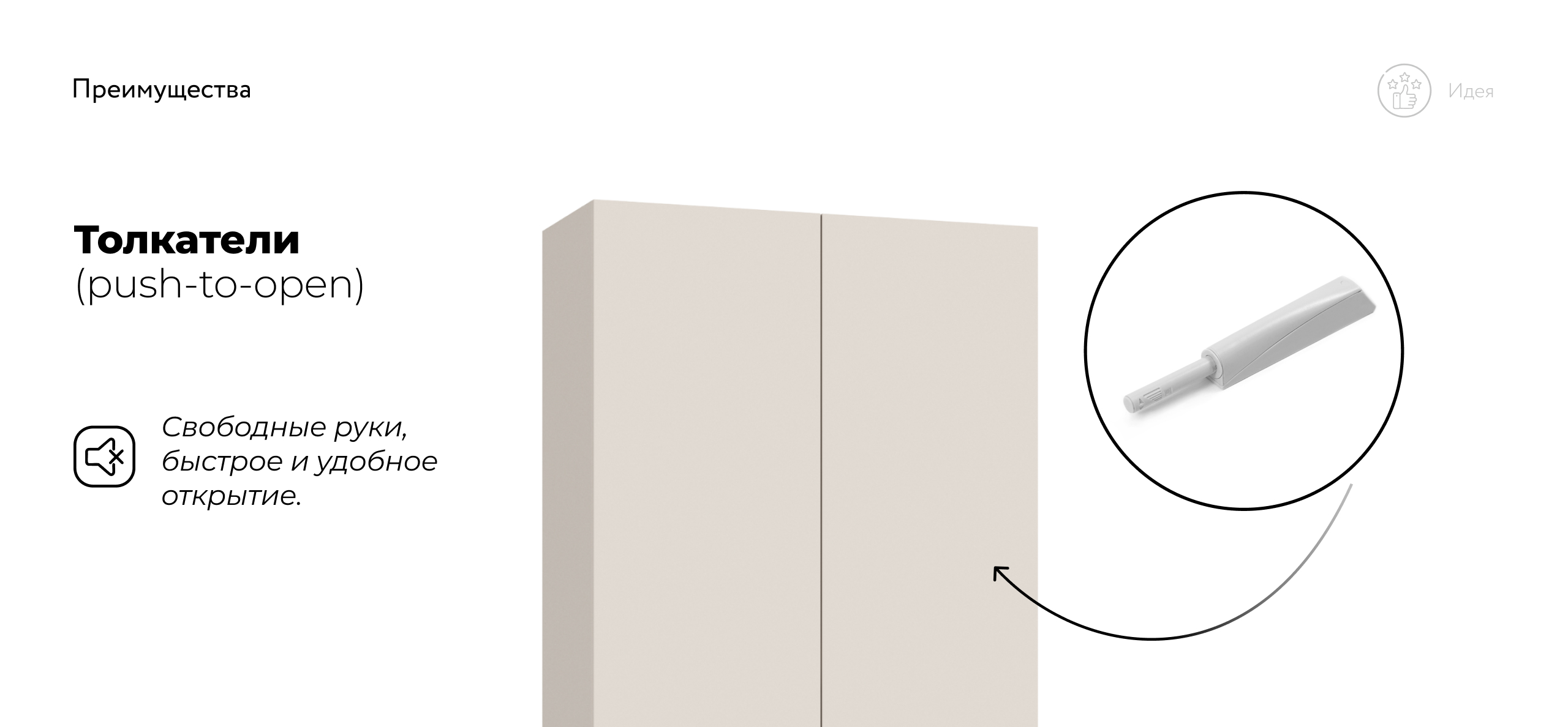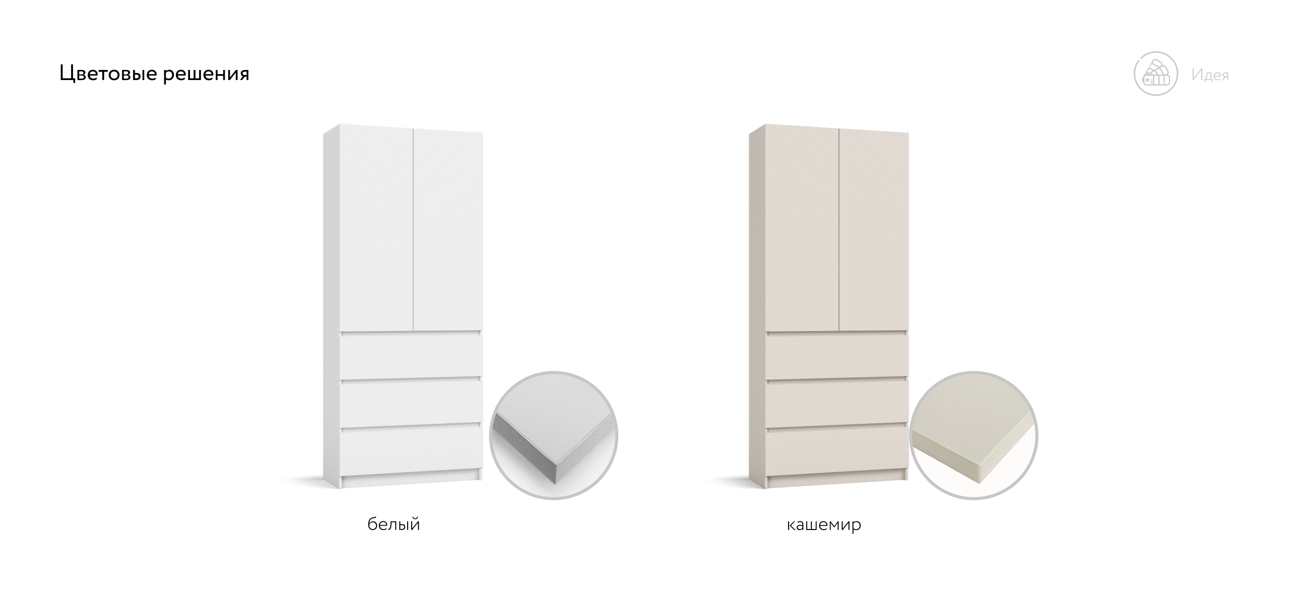 Два оттенка — тёплый Кашемир и светлый Белый — легко встраиваются в сценарии современной квартиры: от спокойного минимализма до мягкой неоклассики. Итог — ощущение упорядоченности и воздуха, когда всё на своём месте и всё под рукой.