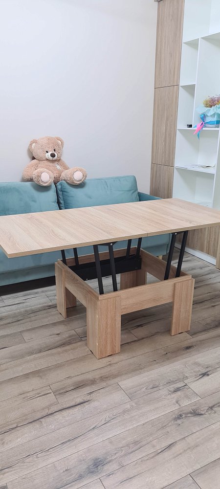 Стол-трансформер – практичное приобретение, выполняющее двойную функцию. В сложенном виде он служит журнальным или письменным столом, занимающим очень немного места в гостиной, а с разложенной столешницей превращается в обеденный стол на 8 персон. Стол оснащен надежным механизмом раскладки и улучшенными креплениями.